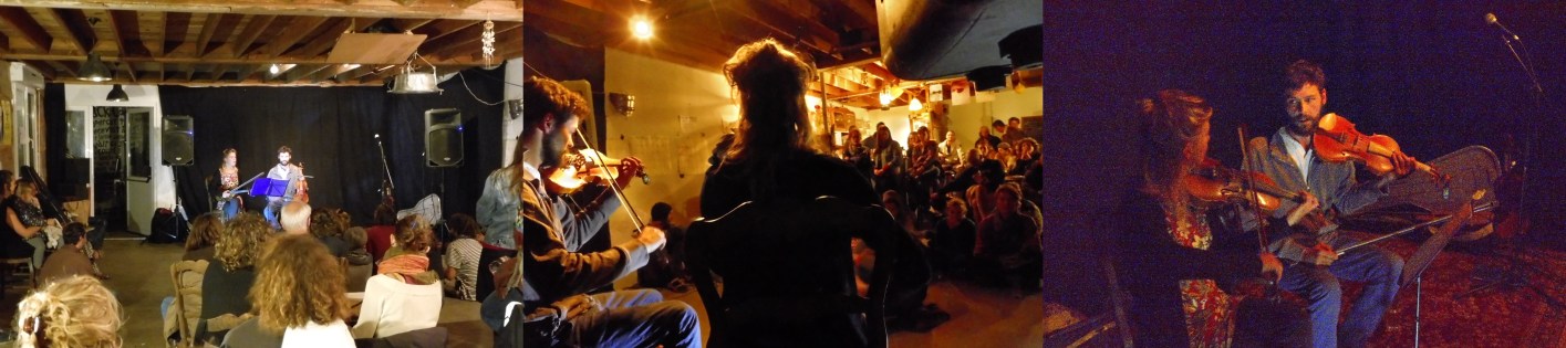 - En première partie de soirée, Lison et Lucas, sorti.e.s tout droit de 3 jours de résidence nous ont partagé pour une 1ère leur spectacle mêlant poésie, texte, chant, à deux violons. Voici quelques photos.